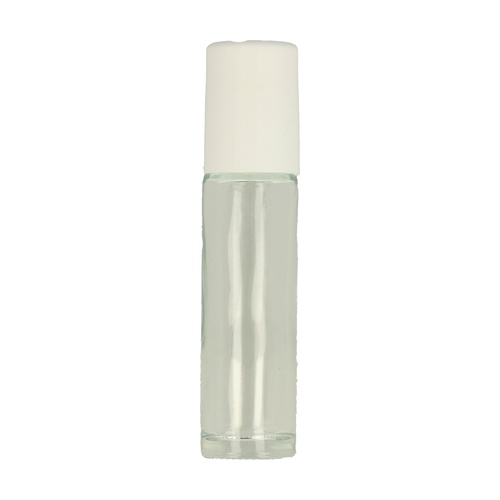 • Frasco pequeno transparente com tampa branca em fundo branco
